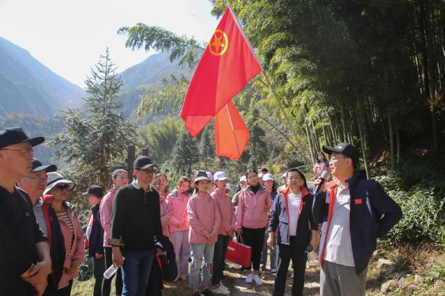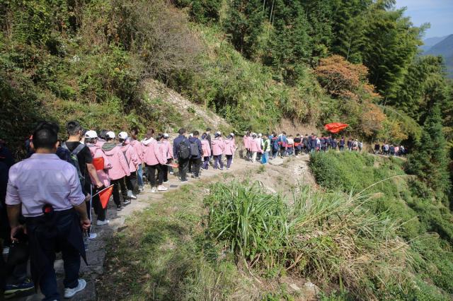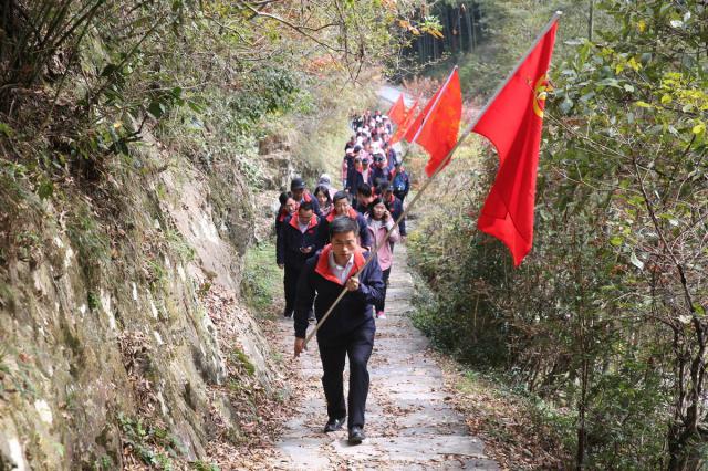 當(dāng)日上午10:30,全員齊聚旌歙古道入口,隨著一聲“出發(fā)”號(hào)令,優(yōu)秀青年代表高舉團(tuán)旗,參加活動(dòng)人員分成三個(gè)梯隊(duì),沿著古道蜿蜒前進(jìn),充分感受到古徽道開辟的艱辛,進(jìn)一步從傳統(tǒng)歷史文化中汲取精神力量。行至活動(dòng)終點(diǎn)五里洞,團(tuán)員青年們自編自演的快板,同唱《我和我的祖國(guó)》《我們都是追夢(mèng)人》等文藝節(jié)目,更是將徒步活動(dòng)推向了高潮。