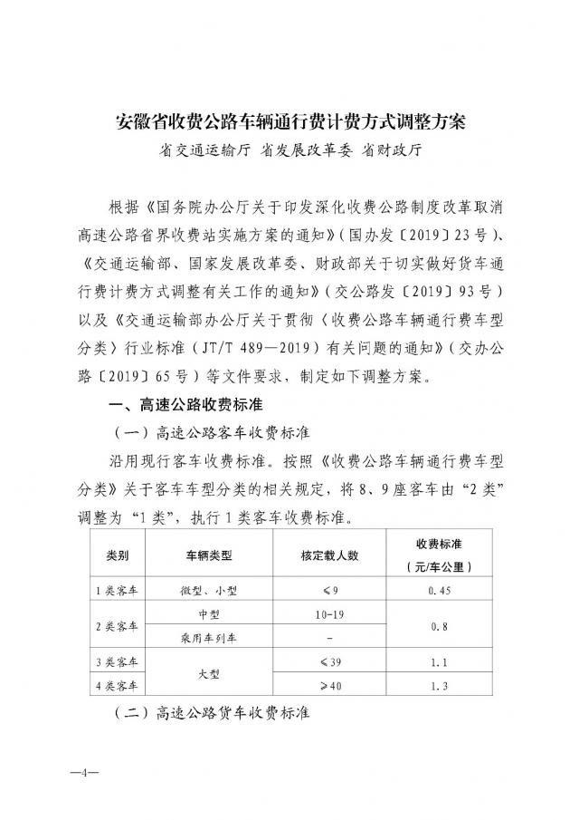 安徽省收費(fèi)公路車輛通行費(fèi)計(jì)費(fèi)方式調(diào)整方案